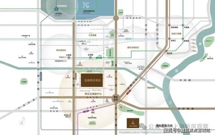 项目周边有黎安公园、淀浦河绿廊、莘庄梅园、母亲林、莘庄公园、莘城中央公园等众多大型公共空间。这些绿地和公园为居民提供了休闲娱乐的好去处,还提升了区域的生态环境质量。