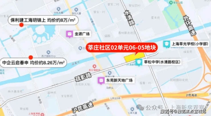 莘庄板块近两年只有保利建工海玥锦上、中企云启春申两个新盘,均在莘庄商务区,售价在8万左右。