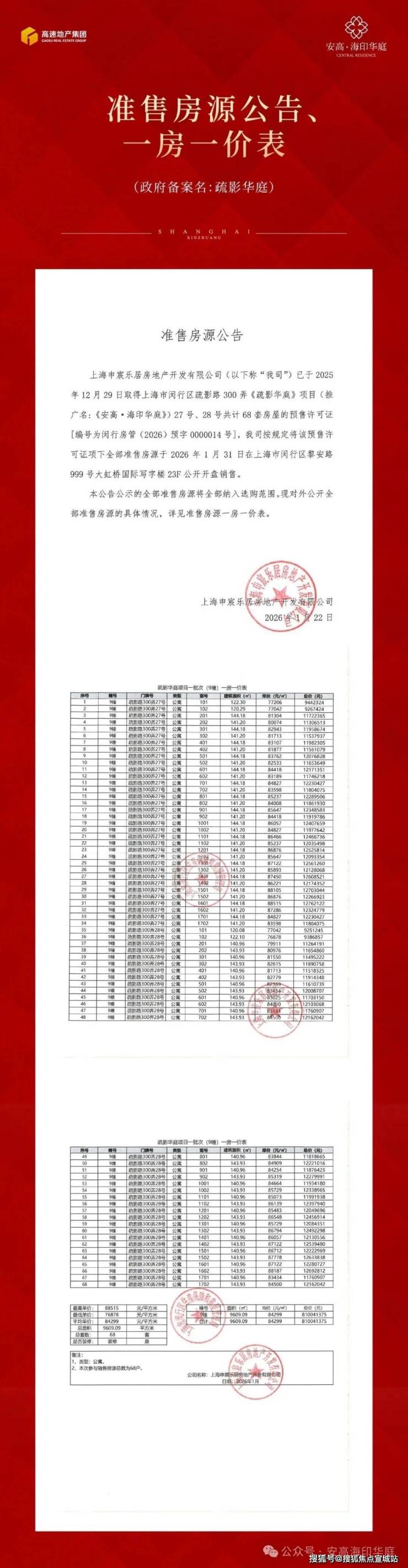 最新消息!闵行莘庄“地王”项目「安高·海印华庭」推出建面约120-170㎡小高层&部分叠墅!逆市热销,首开去化8成。二批次加推68套约120-140㎡小高层;均价84299元/㎡,总价925万起!参观看房请提前线上预约!