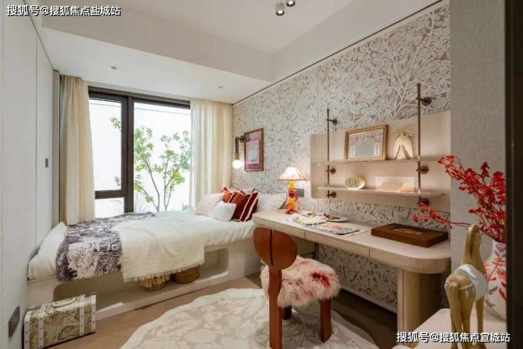这样的尺度感和实用性,真的比一般建面约120㎡以上的宽绰3房更加惊人.当然,最让我觉得惊叹的是这个南向次卧,这个卧室里放下了一张双人床、两个床头柜、一个收纳柜、两个休闲座椅和小茶几.售楼处电话:400-8558-334【热线】