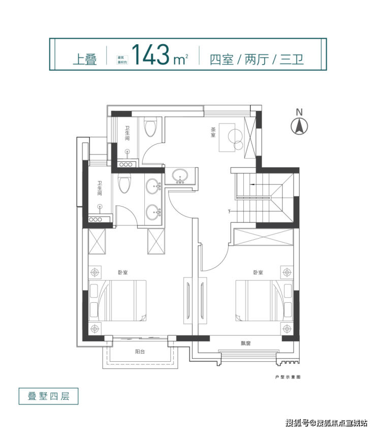 建面约143㎡4室2厅3卫上叠、约153㎡5室2厅3卫下叠,格局方正阔气,约7.3米大面宽双厅,尺度非凡,配合大面宽阳台设计,光线俱佳。
