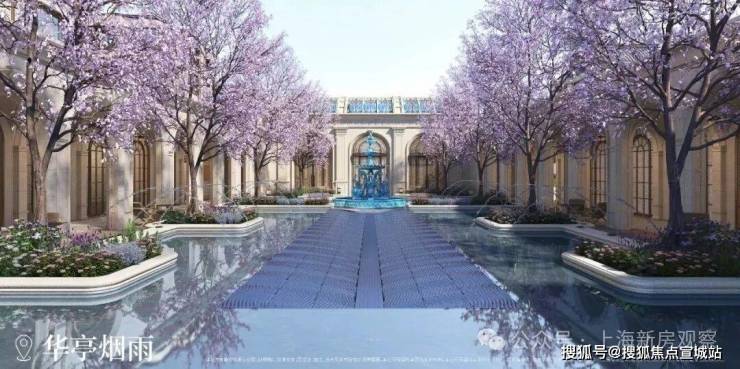 以水为引,起承转合,以海天华堂、华亭烟雨、凤亭问泉,清涟夜月、黄浦秋涛等景观组团,悠然铺陈东方院落式归家礼序。