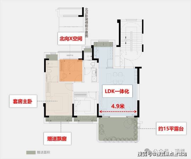 飘窗+北侧设备平台+约15㎡露台,带来超100%超高利用率,这是市面上传统产品完全不能比的!