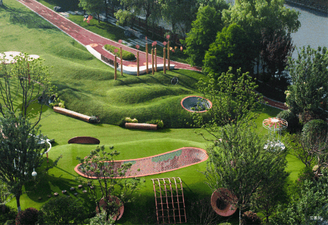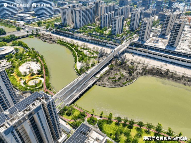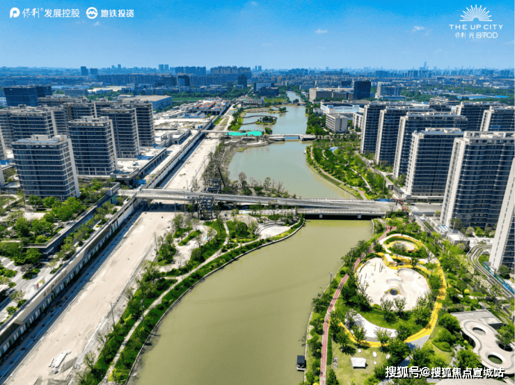 除了便捷与繁华,项目将公园及天然水系引入社区,约3万方运动竞技公园+约14万方滨水艺术潮流公园+城市绿地,以约20万方滨水双公园,构成一幅自然生态下的超级TOD底盘。