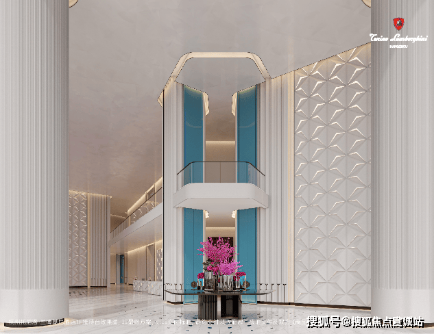 往里走,是两个大堂,一个是瑰郦中心大平层大堂,一个是兰博基尼酒店大堂。