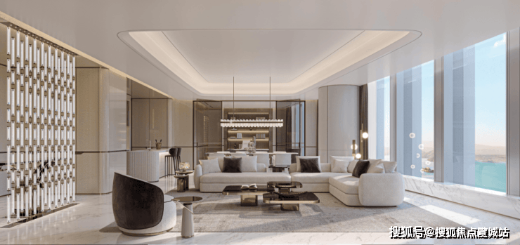 -主力户型230-420㎡行政公寓,采用270°IMAX环幕视野设计,层高4.2米,中央客餐厅打造圈层社交主场[[3][5]]。