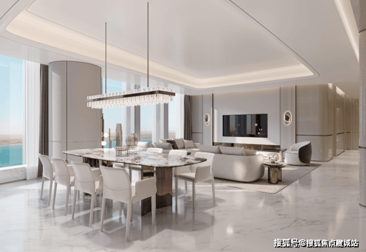 约230㎡“钻石”三房户型,复刻兰博基尼跑车楔形空间,约10米的客厅面宽,大幅全景落地窗,宛如一键打开超跑的全景天窗和无框车门。