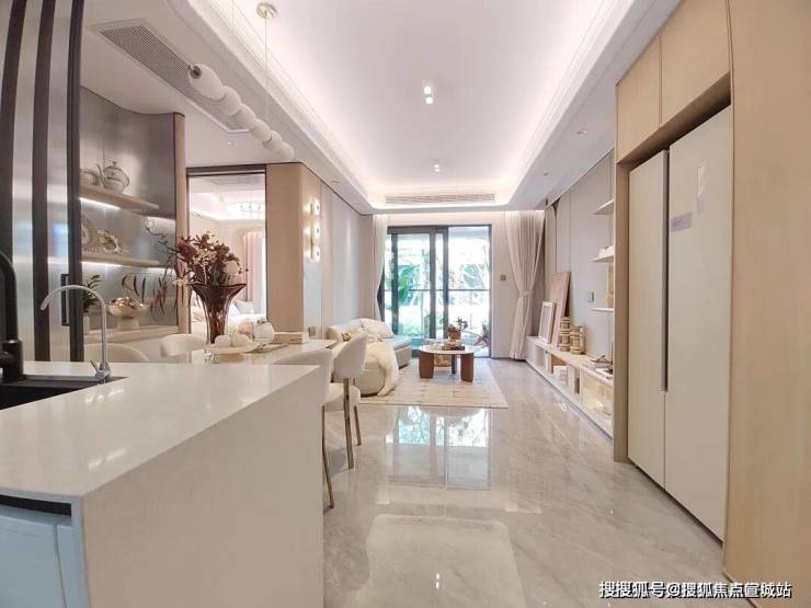 入户门厅以弧形悬浮顶棚为特色,为业主带来柔和温润的归家关怀,让归家的每一步都充满舒适与惬意。