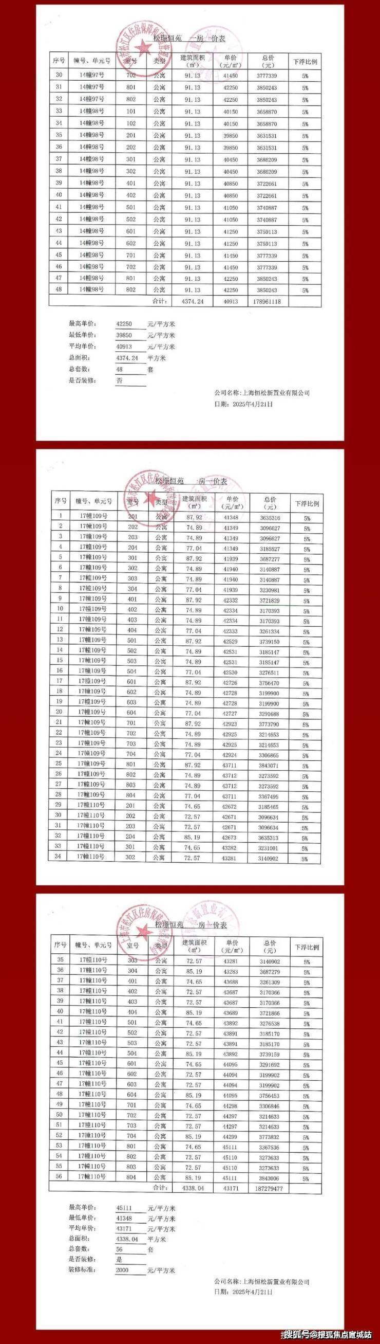 一房一价表如下: