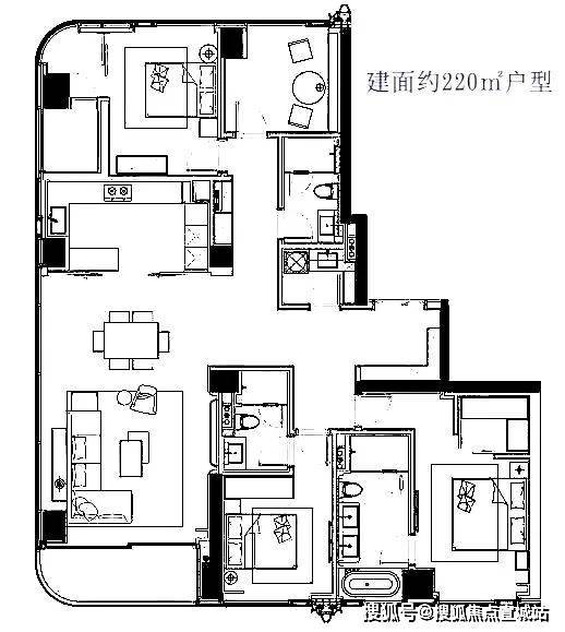 产品主力户型为180-264平三房/四房打造超级观景巨厅巨星级套房、奢阔视野面、中西双厨;