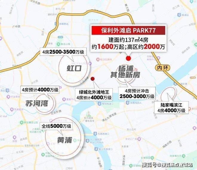 北外滩地王4房预计售价4000万级;虹口其他新房4房价格普遍在2500-3500万;静安苏河湾4房预计4000万级;陆家嘴滨江4房同样4000万级。如此对比之下,保利外滩启PARK77高区2000万级4房的价值,可谓市中心“独一份”。