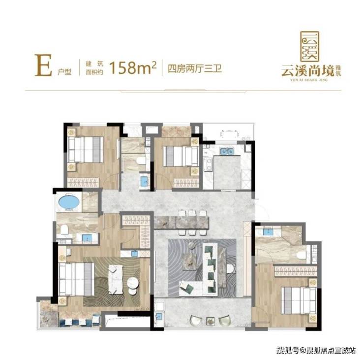 179㎡4房2厅3卫户型——近15.7米超大面宽,三代同堂毫无压力