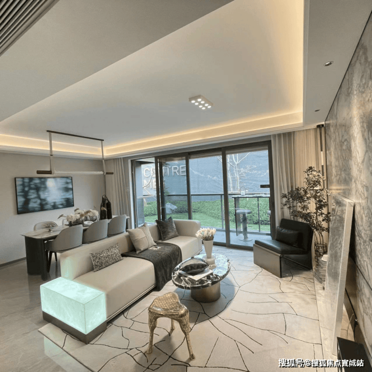 有别于传统住宅单元式立面风格,本案南立面大面积玻璃辅以流畅线条,加之考究配色,营造现代高级的精工建筑质感。