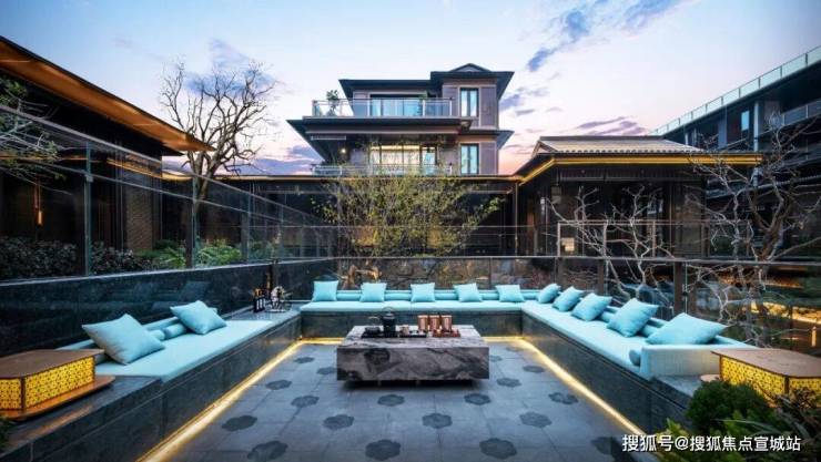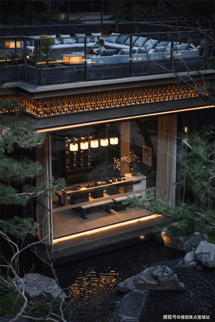 多重标高构建复合场景,亦亭亦榭,形成多样化的视觉序列。©绿城杭州春颂香雪里、LEAP绿城利普