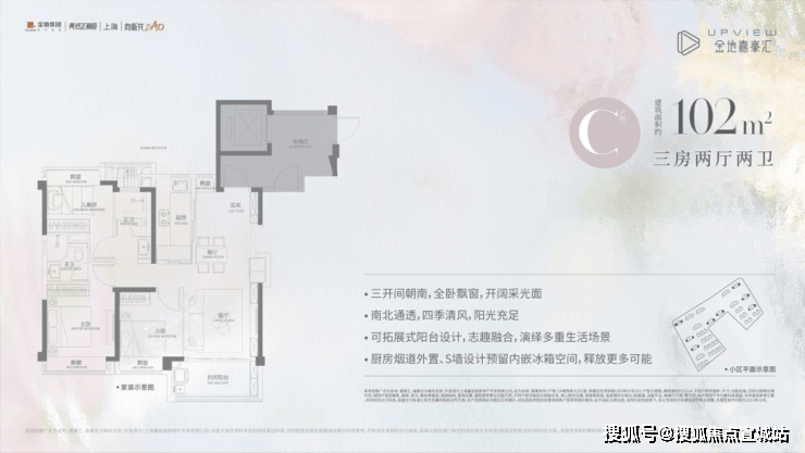 以及我们的网红爆款,建面约102㎡(C户型)三房两厅两卫,不仅保留了其小户型所有的优势,更增强了空间感和舒适度!