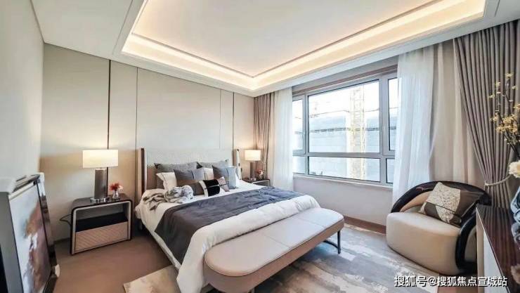 其次,所有户型室内层高都高达约3.15米,堪称“不做平方做立方”,多出的高度,即使装上空调、吊灯、地暖依旧非常舒适。