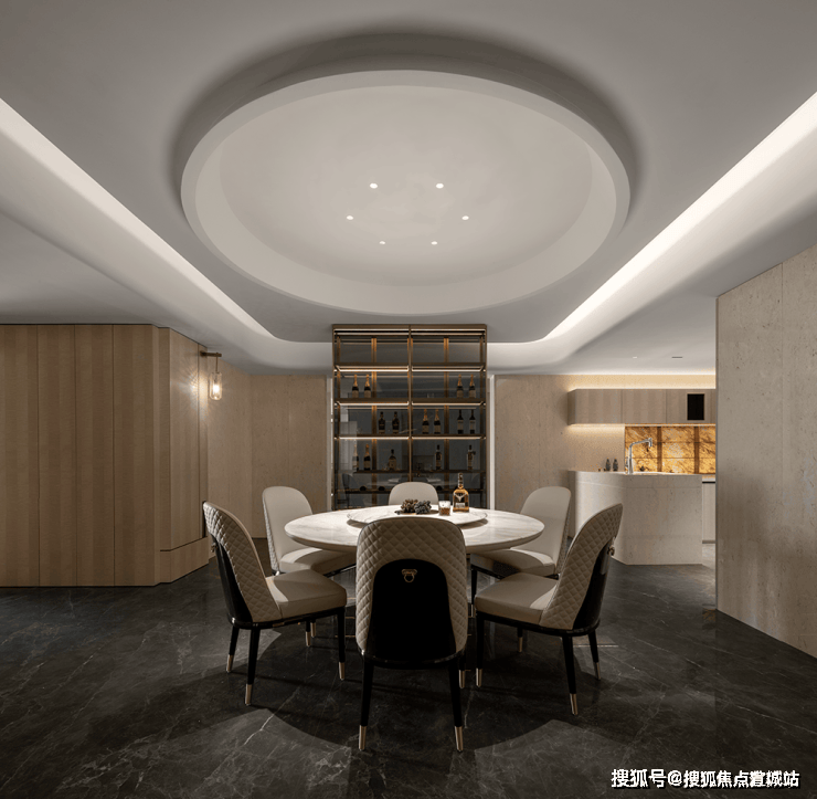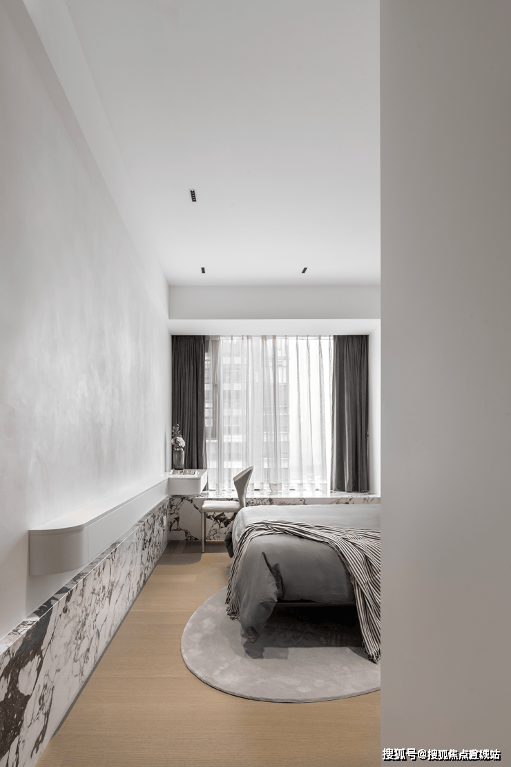 客厅拥有层次分明的划分,运用一体化布局构造平层独特视线。窗口旁布置饮茶室,融入淡淡禅意与日常展开微妙的共鸣。