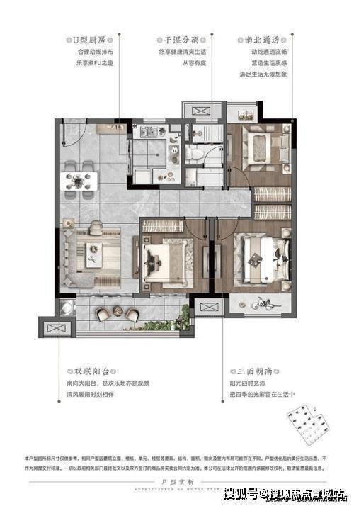 3. 科学设计:精致三房,洋房三开间朝南,科学设计,让您的生活更加舒适。