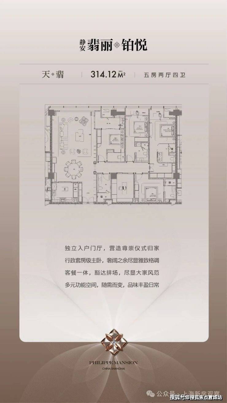 部分特色户型:“天翡” 户型建筑面积约 314.12㎡,5 房 2 厅 4 卫;“极境” 户型建筑面积约 214.59㎡,4 房 2 厅 3 卫;“丽璟” 户型建筑面积约 168.48㎡,3 房 2 厅 2 卫。