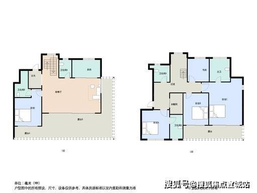 259㎡ 下叠:5 室 2 厅 5 卫,楼王户型,最大庭院约 170㎡