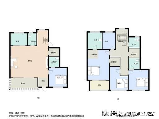 224/225㎡ 下叠:5 室 2 厅 5 卫,阔绰横厅设计