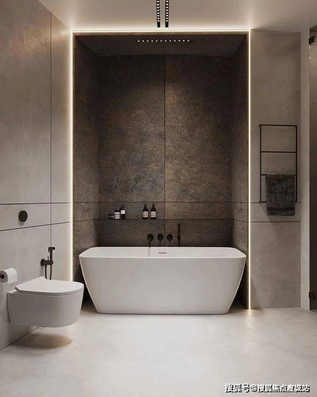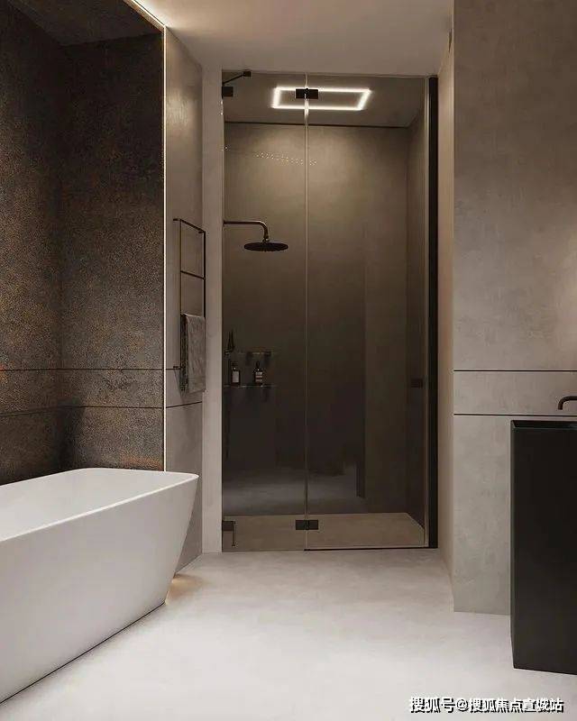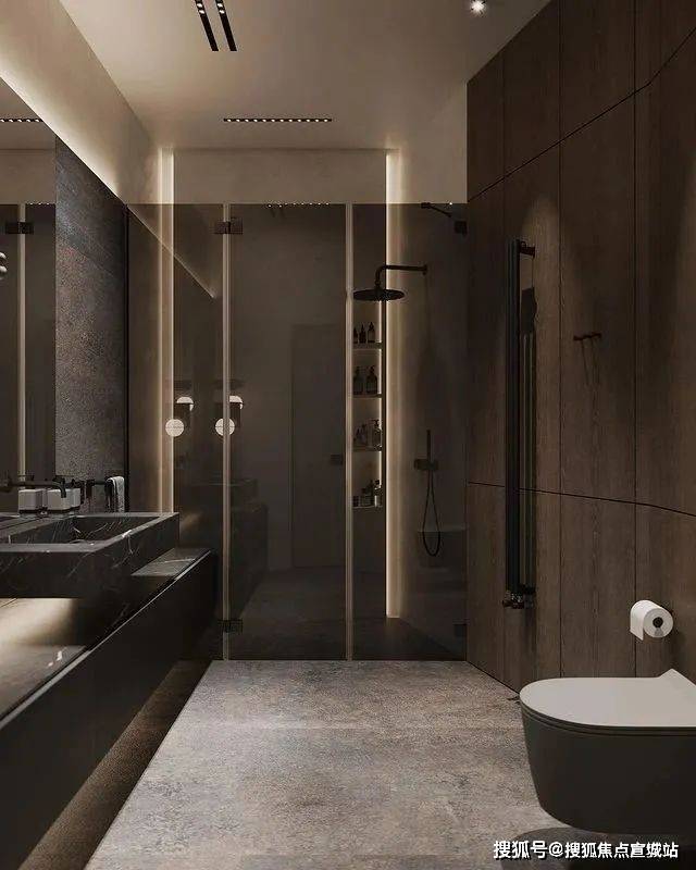 上海闵行古北中央公园壹号公馆售楼处电话:400-8778-334主卫的色调温暖自然,LED灯的巧妙设计角度增加了空间的舒适感。同时,彩色混凝土、木板和金属等材料的巧妙运用,将空间拼接成一个充满高级氛围感的地方。