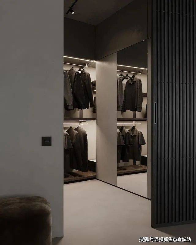 设计师巧妙地在走廊一隅打造了一个时尚又实用的步入式衣橱,提供了充足的收纳空间。这不仅让屋主在出门或回家时可以轻松地更换衣物,更将便捷与美观完美结合,让整个空间充满灵动和活力。