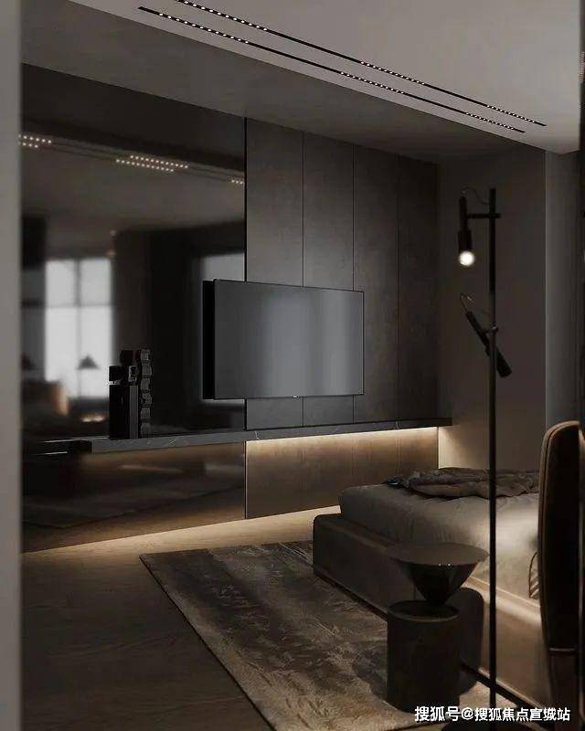 Thebedroomgivesprioritytowithdarktonal,dividethespacecleverlyforbedroomareaandcloakroomatthesametime.Thestainedglasspartitionseparatesthespacecleverly,andthenaturallightpenetratesthroughit,creatingamoreopenvisualeffect.Thewholespaceisfullofcomfortandwarmth,makingpeoplefeelthewarmthandtranquilityofhome.