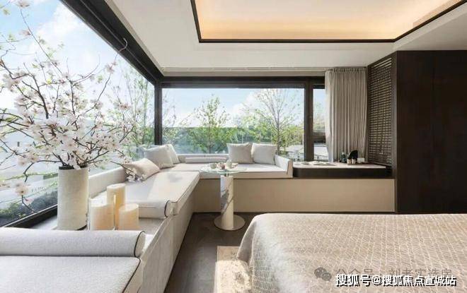 独立电梯厅+四开间朝南+双套房设计+豪华主卧的 约270°无柱转角飘窗 ,整个户型的尺度感拉满