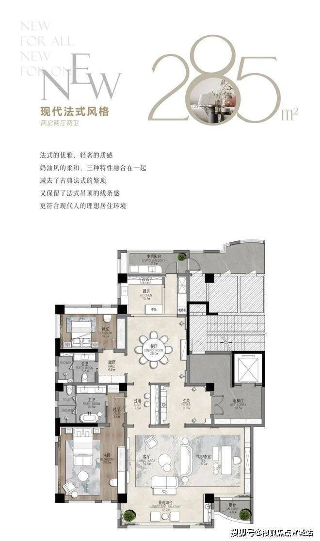 户型与价格:主力户型为建面约 263-386㎡的顶奢大平层,总价 1500 万起。如 285㎡户型采用现代法式风格,双套房设计;386㎡户型配备三套房 + 私人会所,双车位入户。