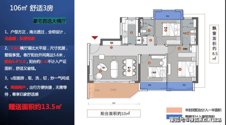 主力户型:有建筑面积约 106㎡的三居室,客厅开间达 5.6 米;还有建筑面积约 133㎡的四居室,南北通透。