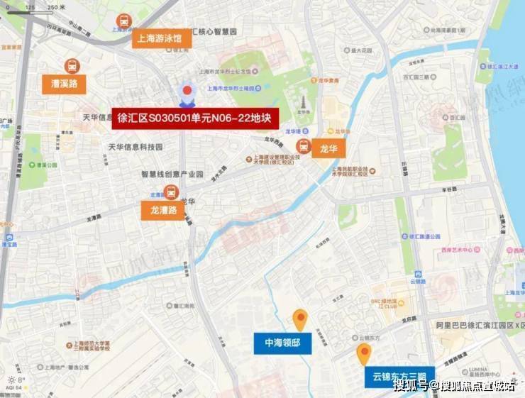 该地块位于徐汇内中环,强生花苑南面,龙华西路东侧,上海师大附中附属龙华中学西侧。出让面积达2公顷,容积率1.59,土地为商品住宅用地性质。11号线和23号线地下贯穿,地块东侧还有龙华烈士陵园和龙华寺。
