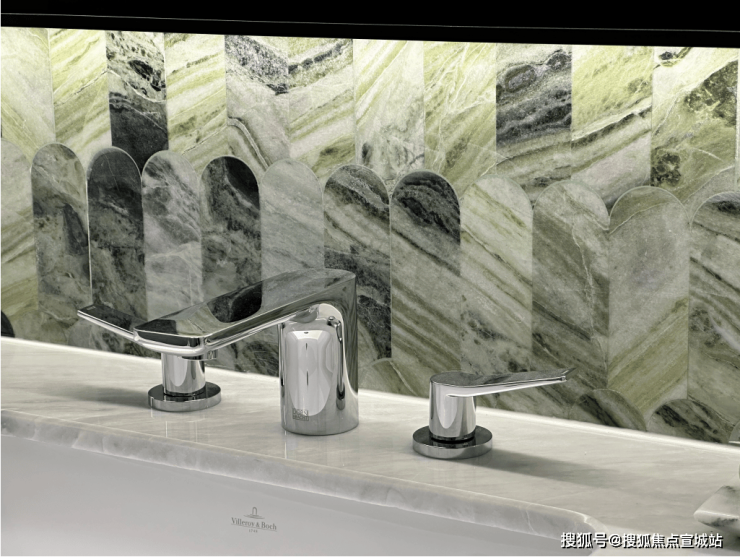 八种不同材质的奢石运用,卫生间地面全铺石材