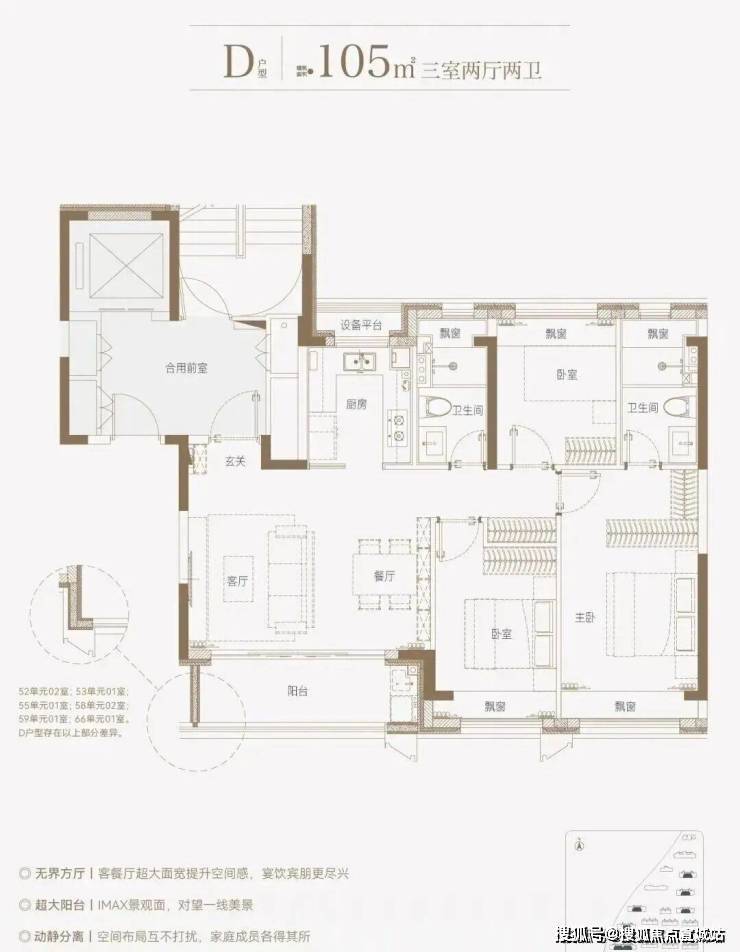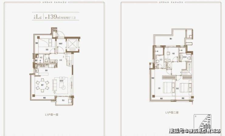 建面约139㎡上叠户型,三层是会客区,四层是居住区,阳台+露台+多个飘窗设计,附加空间非常大,在别墅类产品中实属罕见!