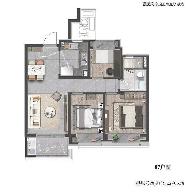 建筑面积约99平方米的三居室设计,在空间利用上更加多样化,一站式满足家庭生活的所有需求,优化了居家动线,显著提升了居住体验。☀︎象屿交控·中环云悦府售楼处电话:400-8123-224☎☎☀︎