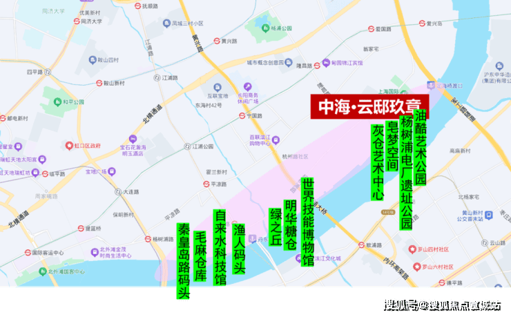 楼盘地址:上海市杨浦区平凉路与贵阳路路口(北区)、内江路与凉州路路口(南区),东外滩滨江板块