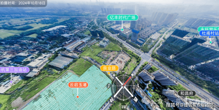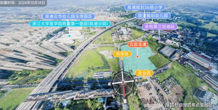 销售一定会宣传的【玉鸟集、良渚文化村】,在西面直线距离约2.6公里位置。