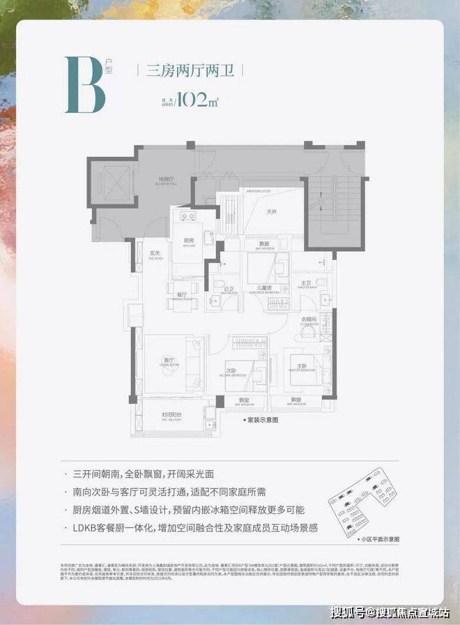 建面约102平3房2厅2卫(边户)