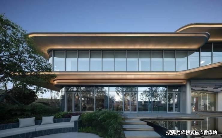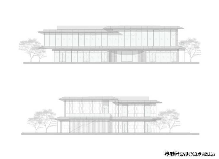 极简线条、大面积玻璃、东方传统飘檐元素打造 类剧院式公建化立面