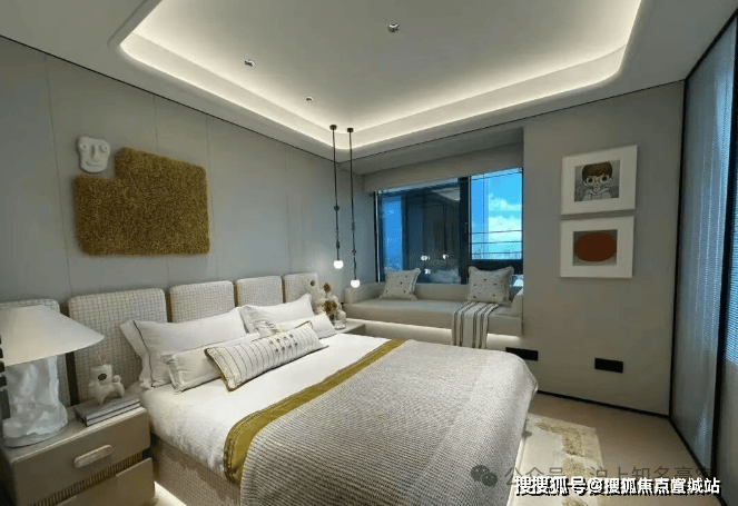 主卧背景墙更以威尼斯安缦酒店同款树瘤木,搭配巴黎宝格丽酒店同源羊皮纸,将全球顶奢酒店的居住质感搬进家中,每一处选材都彰显塔尖人居的高奢基因!