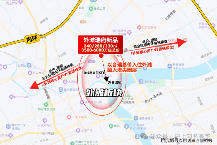 而外滩瑞府核心竞争力,在于其对“外滩核心圈”的精准占位(直线外滩约1公里)