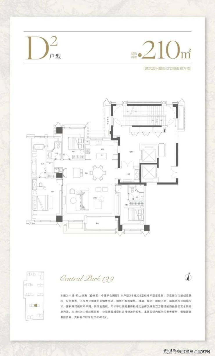 建面约210㎡,分为中间套与边套产品: