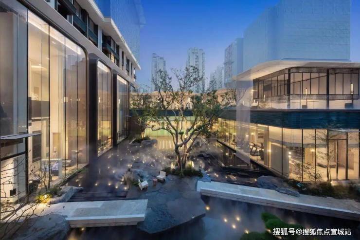 未来,水系穿行于约800㎡的下沉庭院之间,场景之中,水、灯、石、树、墙等等装饰元素有机结合,每一种细节元素背后,都有各自所代表的符号语言。
