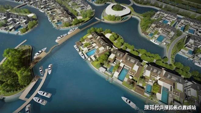 每一排别墅前都有一条渠道,引入水系,可!以!停!游!艇!是真正的游艇码头滨水别墅!