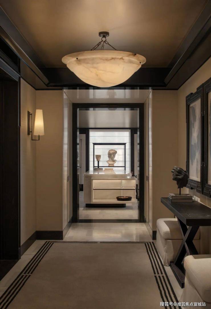 推門而入,玄關地面鋪展開法式幾何拼花大理石,理性的線條秩序井然,彷彿在提醒着都市生活的節奏與規則。