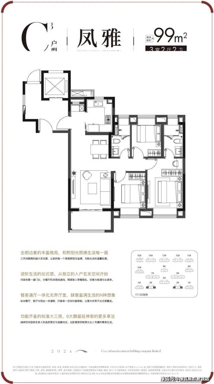 中交•凤启虹桥售楼处地址:多个房产信息平台一致显示,中交凤启虹桥位于上海市青浦区华新镇新凤中路1688弄。C3户型|建面约99㎡3房户型图▼