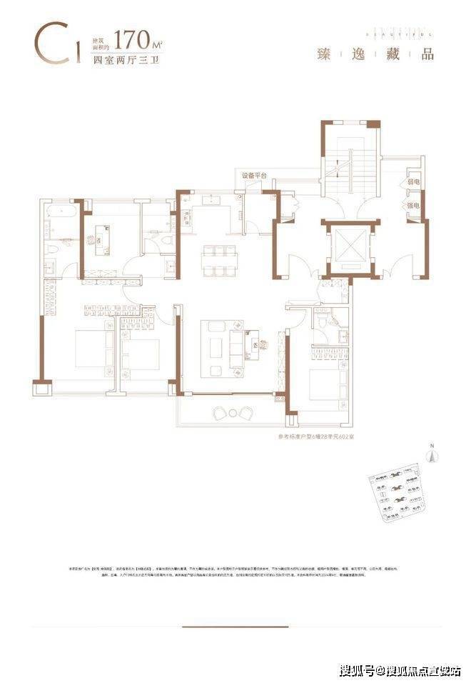 170㎡大平层:南向四开间约15.4米,主卧套房+双卫设计,边户享270°飘窗及转角阳台