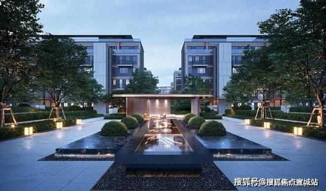项目打造了南北双酒店式入户大堂,金属质感的造型景墙,配上璀璨的氛围灯,小区中轴曲水流觞,归家仪式感十足。