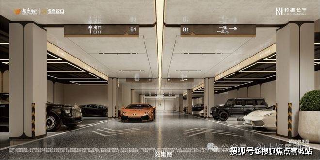 车行道地面采用水磨石、主体车道全吊顶设计,每个车位上方还都有LED环绕灯吊顶,营造仪式感归家氛围。