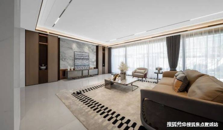 项目采用“现代时尚简约+中式轻奢雅致”的混合风格,避免了单一风格的单调,呈现出更有层次的美学体验。现代元素体现在简洁的线条、开放的布局与智能家居的适配中;中式韵味则通过建材选择、细节装饰及庭院营造来传递。